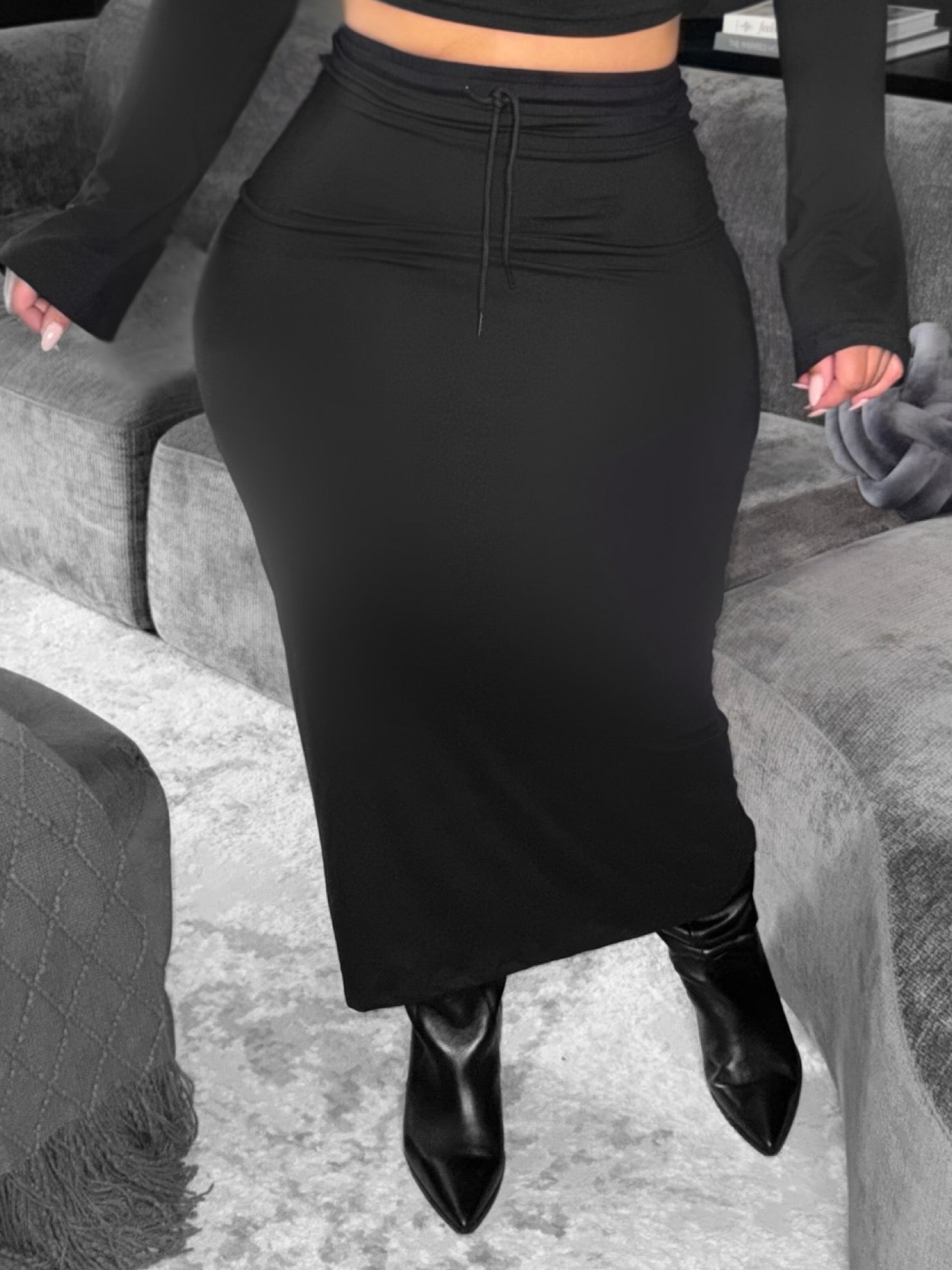 Maxi Elastic Waist Skirt With Drawstring Tie