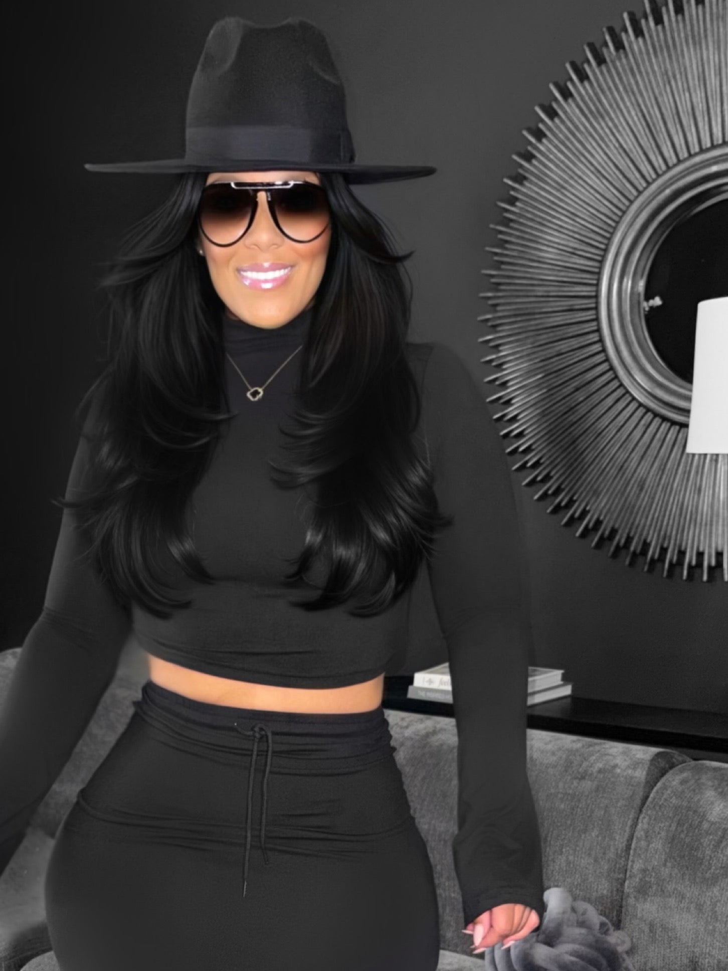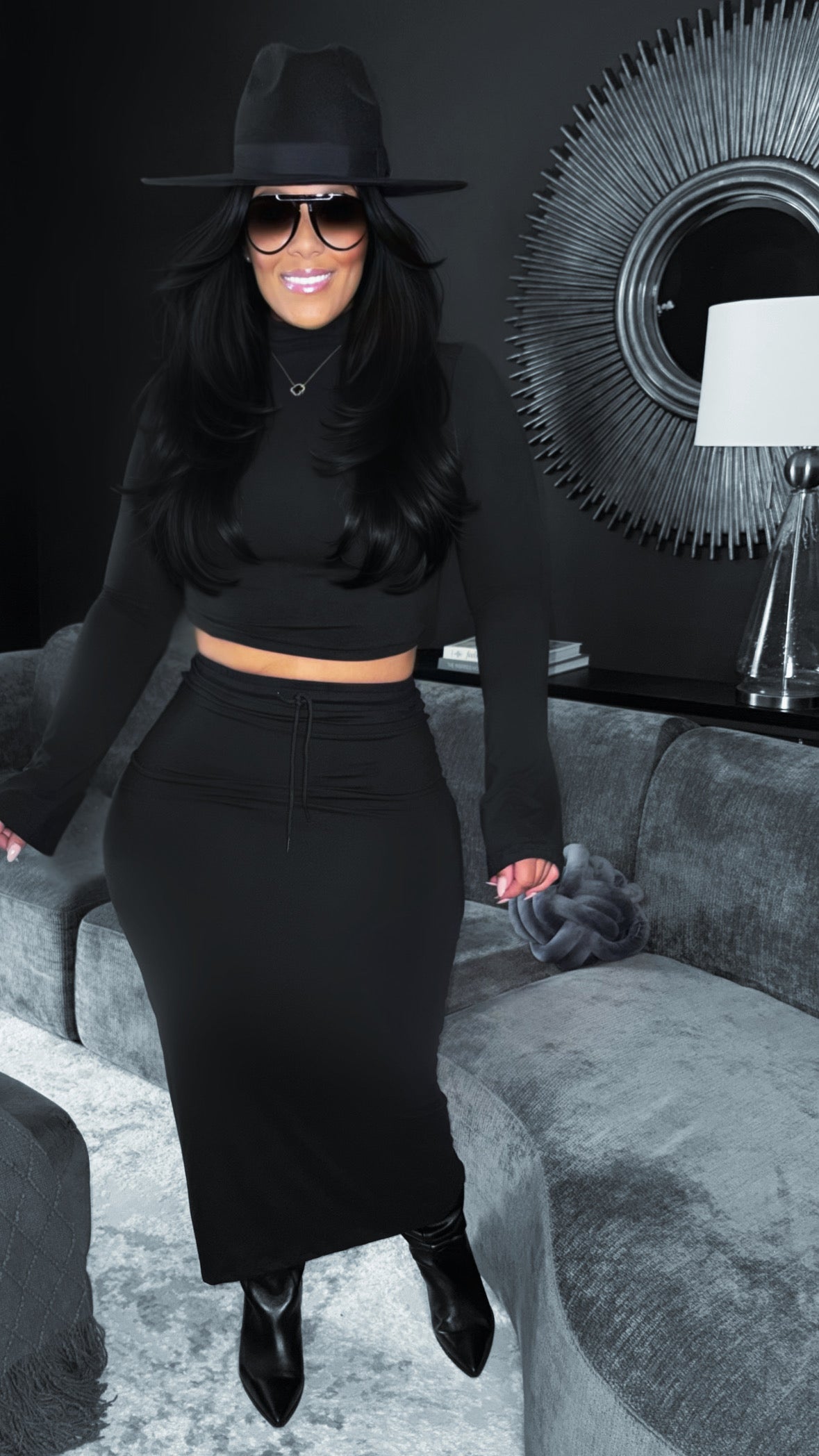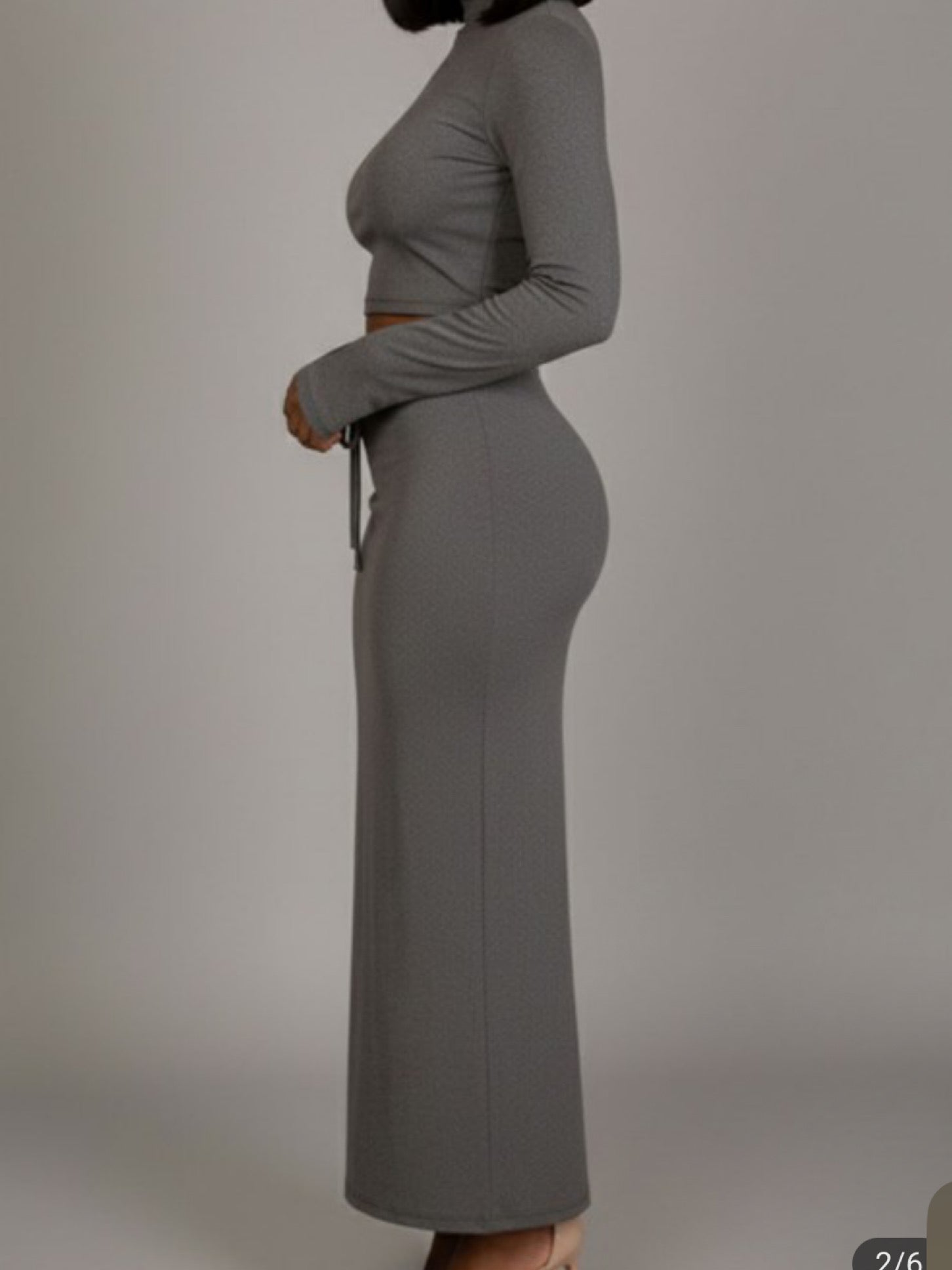 Grab Attention In This Comfy 2 Piece Mockneck Skirt Set.